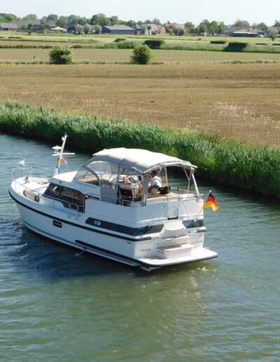 De Linssen 35 SL AC is een compact maar royaal jacht. Ingedeeld met twee slaaphutten met elk een tweepersoons bed, douche en elektrisch toilet.